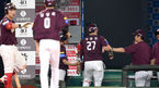 [OSEN=부산, 이대선 기자] 21일 오후 부산 사직야구장에서 ‘2019년 신한은행 마이카 KBO리그’ 롯데 자이언츠와 키움 히어로즈의 경기가 열렸다.6회초 1사 1루에서 키움 박동원이 좌월 투런 홈런을 치고 더그아웃에서 코칭스