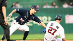 [OSEN=인천, 박재만 기자] 21일 오후 인천 SK행복드림구장에서 '2019 신한은행 MY CAR KBO리그' SK 와이번스와 두산 베어스의 경기가 열렸다.4회말 2사 1루 SK 로맥의 도루 시도를 두산 오재원이 차단하고 있다. /pjmpp@osen.co.kr