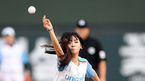 [OSEN=부산, 이대선 기자] 21일 오후 부산 사직야구장에서 ‘2019년 신한은행 마이카 KBO리그’ 롯데 자이언츠와 키움 히어로즈의 경기가 열렸다.경기에 앞서 미스트롯 출신 가수 정다경이 시구를 하고 있다. /sunday@osen.co.kr