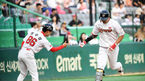 [OSEN=인천, 박재만 기자] 21일 오후 인천 SK행복드림구장에서 '2019 신한은행 MY CAR KBO리그' SK 와이번스와 두산 베어스의 경기가 열렸다.1회말 1사 SK 최정이 솔로포를 날린 뒤 조동화 코치와 하이파이브를 하고 있다. /pjmpp@osen.co.kr