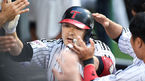 [OSEN=잠실, 박준형 기자] 21일 오후 서울 잠실구장에서 '2019 신한은행 MY CAR KBO리그' LG 트윈스와 KIA 타이거즈의 경기가 진행됐다.1회말 LG 이형종이 솔로홈런을 날린뒤 동료들의 축하를 받고 있다. / soul1014@osen.co.kr