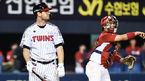 [OSEN=잠실, 박준형 기자] 21일 오후 서울 잠실구장에서 '2019 신한은행 MY CAR KBO리그' LG 트윈스와 KIA 타이거즈의 경기가 진행됐다.8회말 1사 1,2루 LG 이형종의 내야땅볼때 1루 주자 정주현이 류승현 2루수와 충돌하고 있다. / soul1014@ose