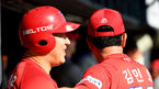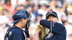 [OSEN=인천, 곽영래 기자] 22일 오후 인천 SK 행복드림구장에서 '2019 신한은행 마이카 KBO리그' SK 와이번스와 두산 베어스의 경기가 열렸다.2회말 무사 만루 두산 최원준이 장승현과 이야기를 나누고 있다. /youngrae@osen.co.kr
