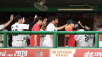 [OSEN=인천, 이대선 기자] 23일 오후 인천 SK행복드림구장에서 ‘2019년 신한은행 마이카 KBO리그’ SK 와이번스와 두산 베어스의 경기가 열렸다.4회말 1사 1루에서 SK 선수들이 이재원의 홈런에 환호하고 있다. / sunday@osen.co.kr