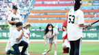 [OSEN=인천, 이대선 기자] 23일 오후 인천 SK행복드림구장에서 ‘2019년 신한은행 마이카 KBO리그’ SK 와이번스와 두산 베어스의 경기가 열렸다.경기에 앞서 환아 예지, 서진, 현아가 시구 및 시타를 하고 있다. / sunday@osen.co.kr