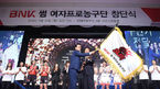[OSEN=부산, 민경훈 기자] 24일 오전 부산 부산진구 롯데호텔부산 크리스탈볼룸에서 'BNK썸 여자프로농구단' 창단식이 열렸다.창단식에서 구단기 전달식이 진행되고 있다. / rumi@osen.co.kr