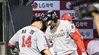 [OSEN=잠실, 박재만 기자] 25일 오후 서울 잠실야구장에서 ‘2019 신한은행 MY CAR KBO리그’ LG 트윈스와 SK 와이번스의 경기가 열렸다.7회초 선두타자 SK 최정이 1점 홈런을 날린 뒤 로맥과 세리머니를 하고 있다. /pjmpp@osen.co.kr