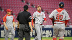 [OSEN=잠실, 박재만 기자] 25일 오후 서울 잠실야구장에서 ‘2019 신한은행 MY CAR KBO리그’ LG 트윈스와 SK 와이번스의 경기가 열렸다.4회말 2사 LG 오지환의 타구에 맞은 SK 김광현이 고통을 호소하고 있다. /pjmpp@osen.co.kr