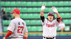 [OSEN=잠실, 최규한 기자] 26일 오후 서울 잠실야구장에서 ‘2019 신한은행 MY CAR KBO리그’ LG 트윈스와 SK 와이번스의 경기가 열렸다.1회말 1사 1루 상황 LG 이형종이 선제 1타점 2루타를 날리고 더그아웃을 향해 세리머니를 하고