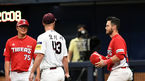 [OSEN=고척, 박재만 기자] 27일 오후 고척 스카이돔에서 '2019 신한은행 MY CAR KBO리그' 키움 히어로즈와 KIA 타이거즈의 경기가 열렸다.6회초 2사 KIA 터커가 키움 요키시의 변화구에 머리를 맞은 후 1루로 향하며 대화를 나누고 있다. /