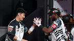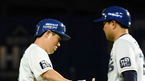 [OSEN=창원, 민경훈 기자] 28일 오후 경상남도 창원NC파크에서 ‘2019년 신한은행 마이카 KBO리그’ NC 다이노스와 LG 트윈스의 경기가 열렸다.3회말을 마치고 LG 선발 류제국에게 김현수가 백허그하며 미소짓고 있다./rumi@osen.co.