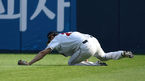 [OSEN=잠실, 이대선 기자] 29일 오후 서울 잠실야구장에서 ‘2019년 신한은행 마이카 KBO리그’ 두산 베어스와 롯데 자이언츠의 경기가 열렸다.2회초 2사 1,2루에서 두산 정진호가 롯데 전준우의 잘 맞은 타구를 잡고 있다. /sunda