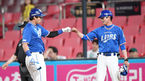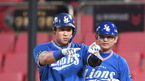 [OSEN=수원, 곽영래 기자] 2일 오후 경기도 수원 kt위즈파크에서 '2019 신한은행 MY CAR KBO리그’ KT 위즈와 삼성 라이온즈의 경기가 열렸다.6회초 2사 1,3루 삼성 김동엽이 동점 적시타를 때려낸 뒤 강명구 코치와 세레머니를 하고