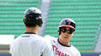 [OSEN=잠실, 지형준 기자] 2일 오후 서울 잠실야구장에서 ’2019 신한은행 MY CAR KBO 리그’ LG 트윈스와 한화 이글스의 경기가 열린다.경기에 앞서 LG 이천웅이 훈련을 하며 동료선수들과 이야기를 나누고 있다. /jpnews@osen.co.kr