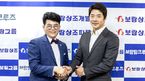 [사진]최철홍 보람그룹 회장(왼쪽)과 배우 권상우가 조인식을 가진 후 악수를 나누고 있다. /제공=보람상조◀보람상조의 파격 행보,새 모델에 배우 권상우와 계약◀권상우,박영규,문희경 등3인 전속 모델 체제로 전 연령층 대상