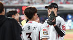 [OSEN=잠실,박준형 기자]3일 오후 서울 잠실구장에서 '2019 신한은행 MY CAR KBO리그' LG 트윈스와 한화 이글스의 경기가 진행됐다.8회초 1사 LG 유강남이 교체되는 정우영 투수를 격려하고 있다. / soul1014@osen.co.kr