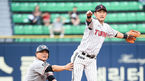 [OSEN=잠실,박준형 기자]3일 오후 서울 잠실구장에서 '2019 신한은행 MY CAR KBO리그' LG 트윈스와 한화 이글스의 경기가 진행됐다.2회초 무사 1루 한화 정근우의 내야땅볼때 1루 주자 김태균이 2루에 포스아웃된뒤 정주현 2루수를 붙잡