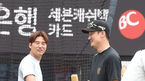 [OSEN=수원, 곽영래 기자] 3일 오후 경기도 수원 kt위즈파크에서 열리는 ‘2019 신한은행 MY CAR KBO리그’ KT 위즈와 삼성 라이온즈의 경기에 앞서 양팀 훈련시간이 진행됐다.삼성 김상수와 KT 오태곤이 주먹을 맞대며 이야기를