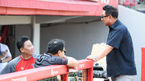 [OSEN=광주,박준형 기자] 4일 오후 광주-KIA챔피언스필드에서 '2019 신한은행 MY CAR KBO리그' KIA 타이거즈와 NC 다이노스의 경기가 진행된다.경기에 앞서 심재학 해설위원이 은퇴 앞둔 이범호와 이야기를 나누고 있다./ soul1014@osen.co.kr