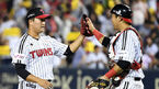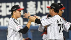 [OSEN=광주,박준형 기자] 4일 오후 광주-KIA챔피언스필드에서 '2019 신한은행 MY CAR KBO리그' KIA 타이거즈와 NC 다이노스의 경기가 진행됐다.8회말 2사 2루 KIA 유민상이 1타점 적시 2루타를 날린뒤 정성훈 1루 코치와 하이파이브를 하고