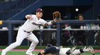 [OSEN=고척, 곽영래 기자] 4일 오후 서울 고척 스카이돔에서 '2019 신한은행 MY CAR KBO리그’ 키움 히어로즈와 두산 베어스의 경기가 열렸다.9회말 1사 두산 오재일이 키움 박동원의 유격수 땅볼때 김재호의 송구를 잡아내고 있다.