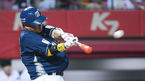 [OSEN=고척, 곽영래 기자] 4일 오후 서울 고척 스카이돔에서 '2019 신한은행 MY CAR KBO리그’ 키움 히어로즈와 두산 베어스의 경기가 열렸다.9회초 1사 1루 두산 박세혁이 기습 번트를 시도하고 있다. / youngrae@osen.co.kr