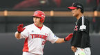 [OSEN=광주,박준형 기자] 5일 오후 광주시 북구 광주-KIA 챔피언스필드에서 '2019신한은행 MYCAR KBO리그' KIA 타이거즈와 LG 트윈스의 경기가 진행됐다.2회말 1사 2,3루 KIA 한승택이 2타점 적시타를 날린뒤 정성훈 1루 코치와 하이파이브
