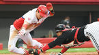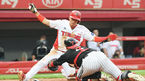 [OSEN=광주,박준형 기자] 5일 오후 광주시 북구 광주-KIA 챔피언스필드에서 '2019신한은행 MYCAR KBO리그' KIA 타이거즈와 LG 트윈스의 경기가 진행됐다.3회말 무사 2루 KIA 터커의 외야플라이때 2루 주자 박찬호가 홈에서 이성우 포수의