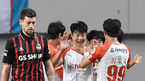 [OSEN=서울월드컵경기장, 민경훈 기자] 6일 오후 서울월드컵경기장에서 열린 '하나원큐 K리그1 2019' FC서울과 강원FC의 경기가 열렸다.전반 강원FC 김지현이 동점골에 성공한 후 동료들과 기쁨을 나누고 있다./ rumi@osen.co.kr
