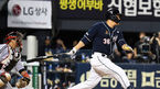 [OSEN=잠실, 지형준 기자] 9일 오후 서울 잠실야구장에서 ’2019 신한은행 MY CAR KBO 리그’ LG 트윈스와 두산 베어스의 경기가 열렸다.6회초 2사 1,2루에서 두산 오재일이 적시타를 날리고 있다. /jpnews@osen.co.kr