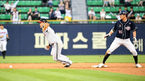 [OSEN=잠실, 지형준 기자] 9일 오후 서울 잠실야구장에서 ’2019 신한은행 MY CAR KBO 리그’ LG 트윈스와 두산 베어스의 경기가 열렸다.5회초 1사에서 LG 정주현이 두산 허경민의 타구를 아쉽게 놓치고 있다. /jpnews@osen.co.kr