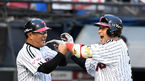 [OSEN=수원, 곽영래 기자] 9일 오후 경기도 수원 KT위즈파크에서 '2019 신한은행 MY CAR KBO리그’ KT 위즈와 키움 히어로즈의 경기가 열렸다.2회초 2사 1루 키움 샌즈가 투런 홈런을 때린 뒤 동료들과 하이파이브를 하고 있다. / youngra