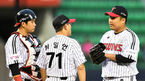 [OSEN=잠실, 박재만 기자] 11일 오후 서울 잠실야구장에서 ‘2019 신한은행 MY CAR KBO리그’ LG 트윈스와 두산 베어스의 경기가 열렸다.3회초LG 최일언 코치가 마운드를 찾아 이우찬을 격려하고 있다. /pjmpp@osen.co.kr