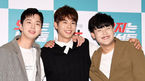 [OSEN=지형준 기자] tvN D Story 5G 웹시트콤 '오지는 녀석들' 제작발표회가 11일 오후 서울 여의도 켄싱턴호텔에서 열렸다.배우 이민호, 김관수, 변승주가 포토타임을 하고 있다. /jpnews@osen.co.kr