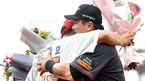 [OSEN=광주, 최규한 기자] 13일 오후 광주-KIA 챔피언스필드에서 ‘2019 신한은행 MY CAR KBO리그’ KIA 타이거즈와 한화 이글스의 경기가 열렸다.은퇴경기를 갖는 KIA 이범호가 KIA 양현종에게 기념패를 받으며 포옹하고 있다. /dream