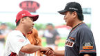 [OSEN=광주, 최규한 기자] 13일 오후 광주-KIA 챔피언스필드에서 ‘2019 신한은행 MY CAR KBO리그’ KIA 타이거즈와 한화 이글스의 경기가 열렸다.은퇴경기를 갖는 KIA 이범호와 한화 김태균이 인사를 나누고 있다. /dreamer@osen.co.kr