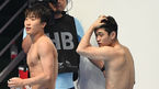 [OSEN=광주, 최규한 기자] 13일 광주광역시 남부대학교 시립국제수영장에서 ‘제18회 2019 광주FINA세계수영선수권대회’ 남자 스프링보드 싱크로 3m 예선이 열렸다.한국 우하람과 김영남이 다이빙 연기를 나서며 수건을 정리