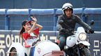 [OSEN=잠실, 이대선 기자] 14일 오후 서울 잠실야구장에서 ‘2019년 신한은행 마이카 KBO리그’ LG 트윈스와 삼성 라이온즈의 경기가 열렸다.경기에 앞서 가수 경리가 시구를 위해 바이크를 타고 그라운드로 입장하고 있다. /sun