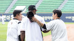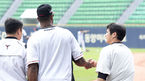 [OSEN=잠실, 이대선 기자] 14일 오후 서울 잠실야구장에서 ‘2019년 신한은행 마이카 KBO리그’ LG 트윈스와 삼성 라이온즈의 경기가 열릴 예정이다.경기에 앞서 LG 새 외국인 선수 페게로가 그라운드에서 선수단에게 인사를