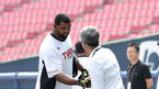 [OSEN=잠실, 이대선 기자] 14일 오후 서울 잠실야구장에서 ‘2019년 신한은행 마이카 KBO리그’ LG 트윈스와 삼성 라이온즈의 경기가 열릴 예정이다.경기에 앞서 LG 카를로스 페게로가 민훈기 해설위원과 인사를 나누고 있다. /s