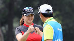 [OSEN=여주, 이동해 기자] 14일 경기도 여주에 위치한 솔모로컨트리클럽(파72ㅣ6527야드)에서 KLPGA투어 'MY문영 퀸즈파크 챔피언십 2019'(총상금 6억 원, 우승상금 1억 2천만 원) 3라운드가 진행됐다.1번홀 그린에서 유고운이 어머니와