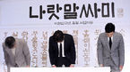 [OSEN=민경훈 기자] 15일 오후 서울시 강남구 메가박스 코엑스서 진행된 영화 ‘나랏말싸미’ 언론시사회 및 기자간담회가 열렸다.시사회장에 조철연 감독과 배우 송강호와 박해일가 기자간담회 중 인사를 하고 있다. / rumi