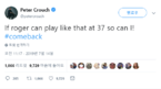 [OSEN=이인환 기자] "그런데 당신은 페더러처럼 로빙 슛을 못하잖아"영국 'BBC'는 15일(한국시간) "은퇴를 선언한 피터 크라우티가 2일만에 복귀를 고민하고 힘들다"라고 하며 "윔블던서 보여준 동갑내기 로저 페