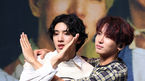 [OSEN=이대선 기자] 17일 오후 서울 용산구 블루스퀘어에서 그룹 펜타곤의 미니 9집 'SUM(MER:)' 발매기념 쇼케이스가 열렸다.그룹 펜타곤 우석과 유토가 포토타임을 갖고 있다. /sunday@osen.co.kr