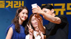 [OSEN=이대선 기자] 17일 오후 서울 동대문구 경희대학교 평화의전당에서 영화 '엑시트' 대규모 쇼케이스 시사회가 열렸다.배우 임윤아와 조정석이 이벤트에 당첨된 관객과 셀카를 찍고 있다. /sunday@osen.co.kr