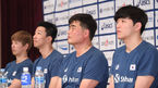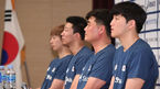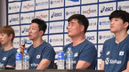 [OSEN=진천, 곽영래 기자] 18일 충북 진천선수촌에서 남녀 배구 국가대표팀 미디어데이가 진행됐다.남자 대표팀 한선수, 신영석, 임도헌 감독, 정지석이 취재진과 인터뷰를 진행하고 있다. /youngrae@osen.co.kr