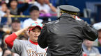 [OSEN=창원, 이대선 기자] 21일 오후 경남 창원NC파크에서 ‘프로야구 2019 MY CAR KBO 올스타전’이 열렸다.2회초 무사에서 로맥아더장군이란 별명을 얻은 SK 로맥이 맥아더장군을 연상 시키는 복장을 하고 타석에 들어서고 있