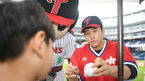 [OSEN=창원, 곽영래 기자] 21일 오후 경남 창원NC파크에서 ‘프로야구 2019 MY CAR KBO 올스타전’이 열렸다.LG 유강남이 사인을 해주고 있다. /youngrae@osen.co.kr