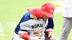 [OSEN=창원, 이대선 기자] 21일 오후 경남 창원NC파크에서 ‘프로야구 2019 MY CAR KBO 올스타전’이 열렸다.홈런레이스 결선에 진출한 로맥이 아들과 포옹하고 있다. /sunday@osen.co.kr