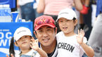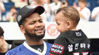 [OSEN=창원, 곽영래 기자] 21일 오후 경남 창원NC파크에서 ‘프로야구 2019 MY CAR KBO 올스타전’이 열렸다.키움 샌즈가 아들과 즐거운 시간을 보내고 있다. /youngrae@osen.co.kr